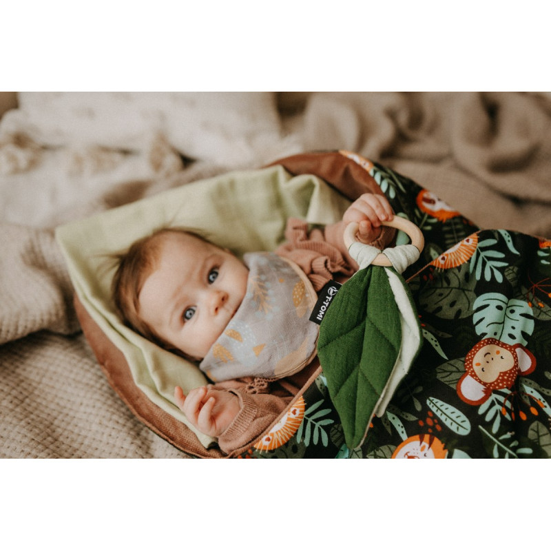 Dřevěná kousátka T-TOMI vznikla spojením dvou materiálů, dřeva a látky. Roztomilé, ale přitom funkční hračky, které Vaše miminko nejen nadchnou, ale stanou se i skvělým pomocníkem při bolestivém prořezávání zoubků. Jsou přirozenou alternativou plastových kousátek. Při hraní s dřevěným kroužkem si děti také procvičí jemnou motoriku. Jemný mušelín v BIO kvalitě přímo vybízí k „poňufání“.